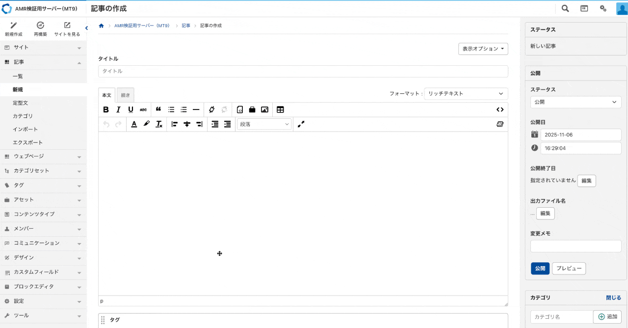 Movable Type 9では、管理画面とリッチテキストエディタが全面刷新されました。